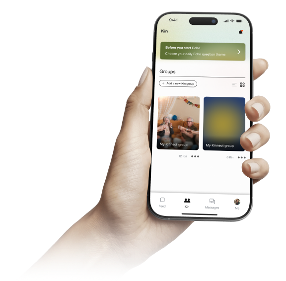 Kinnect turns everyday moments into deeper connections. Whether it’s a thoughtful nudge, a daily reflection, a birthday celebration, or sharing stories in a private Kin group, every interaction helps you stay closer to the people who matter most